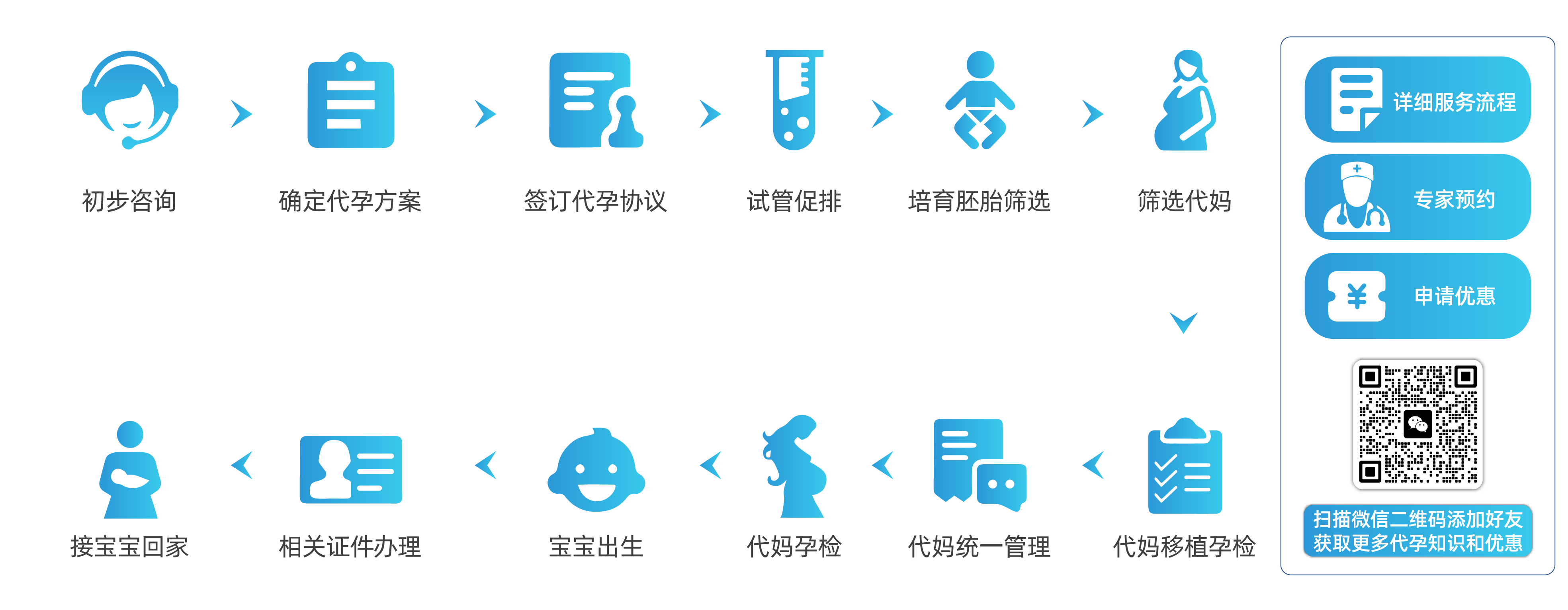 从卵妹挑选、移植、代妈起居到出生交付,客户全程参与流程,做到应知尽知!